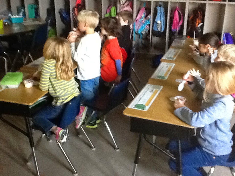 We also got our warm fuzzy jar filled for the first time this year (there are about 70 or so pom poms they must earn from getting compliments and great whole class behavior) We celebrated with a small ice cream treat after lunch.